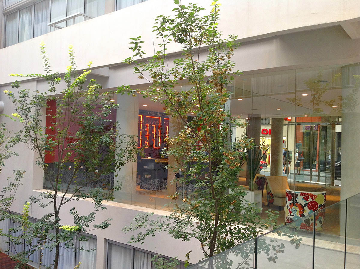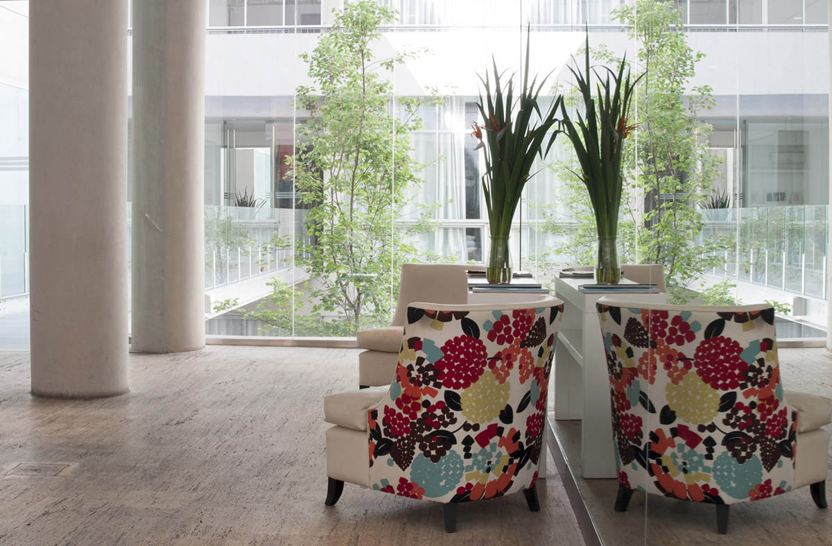 Las dos torres de nuestro edificio se encuentran divididas por un encantador patio interno con espacios verdes y espejo de agua que brindan un entorno agradable y sereno en el medio de la ciudad.